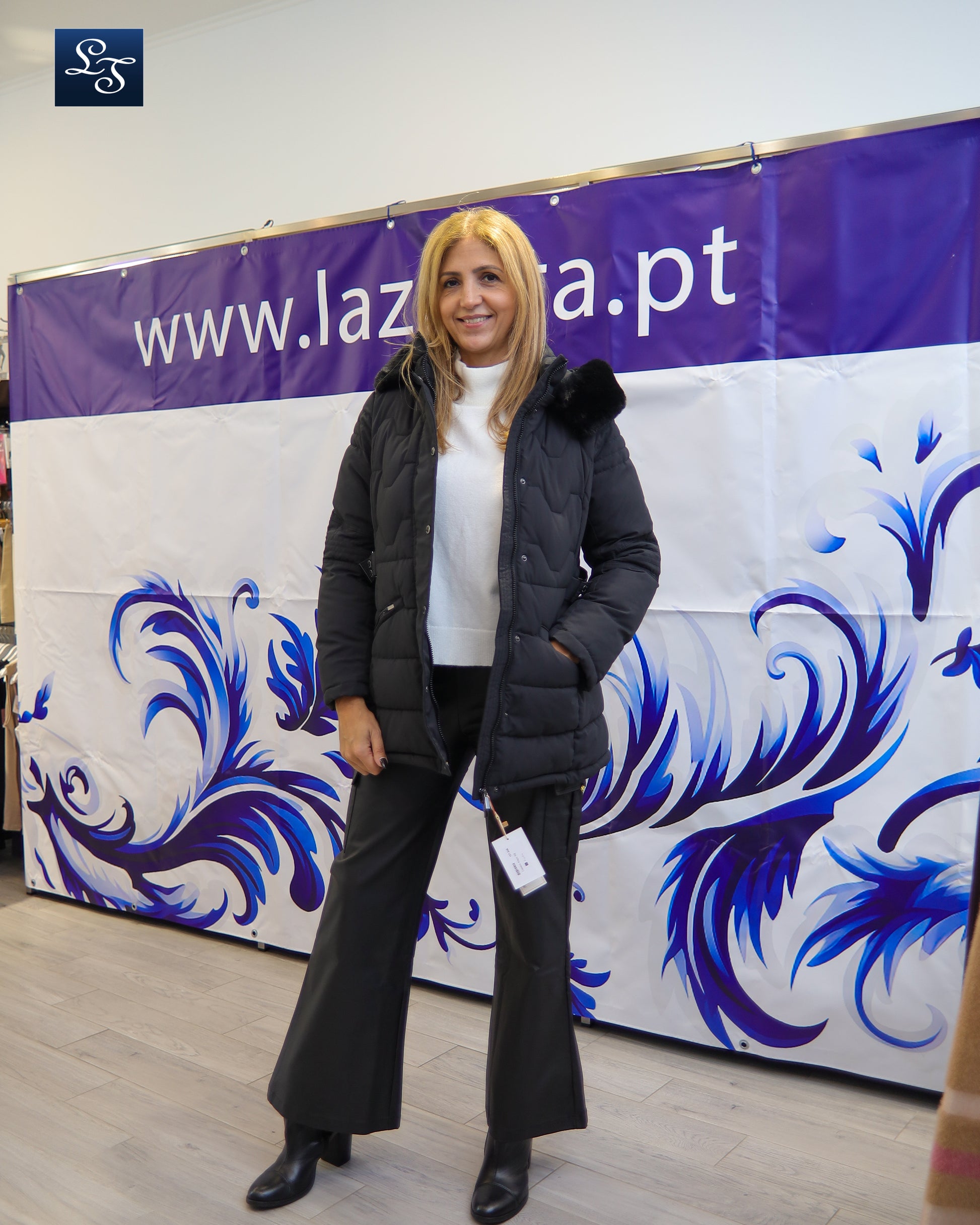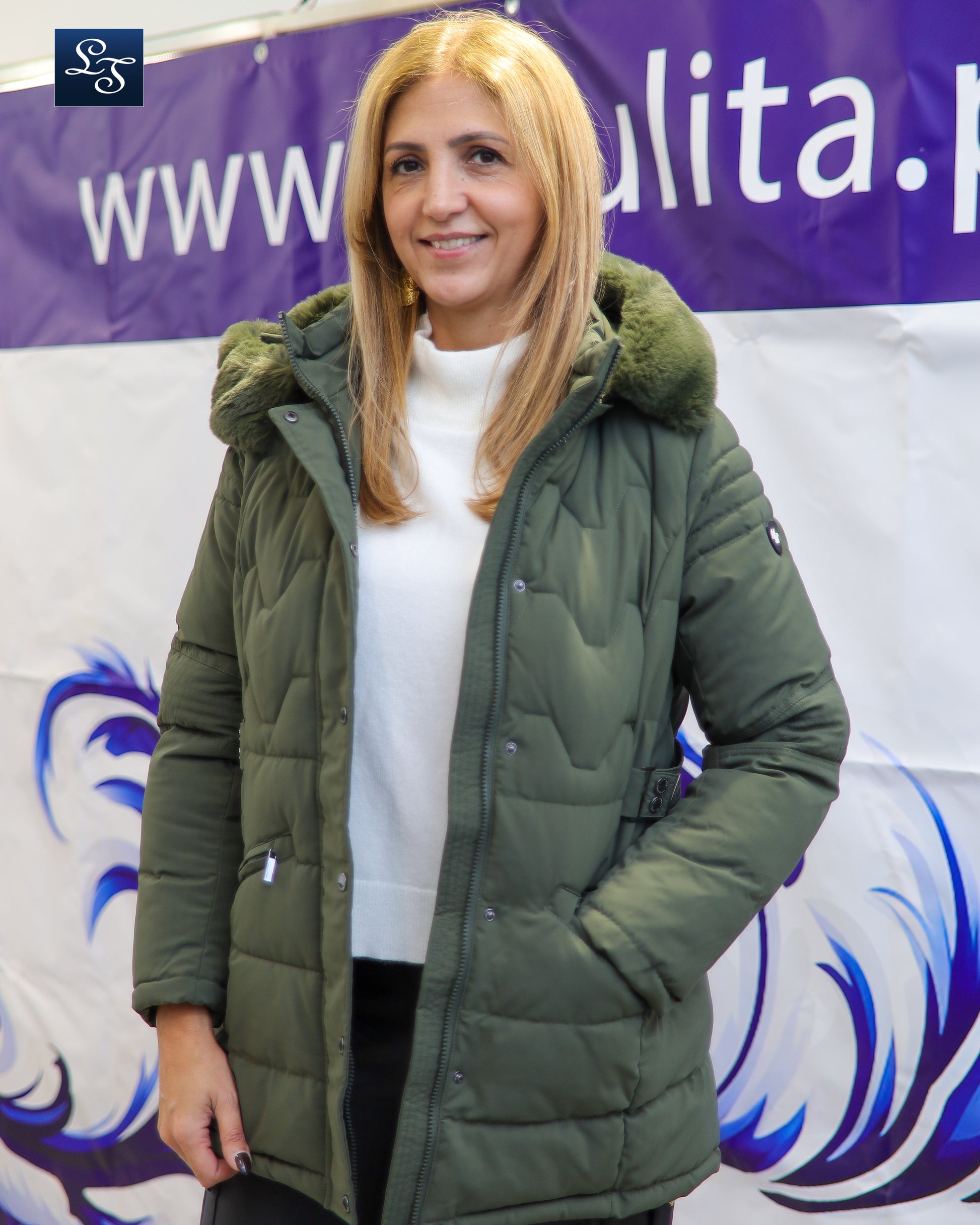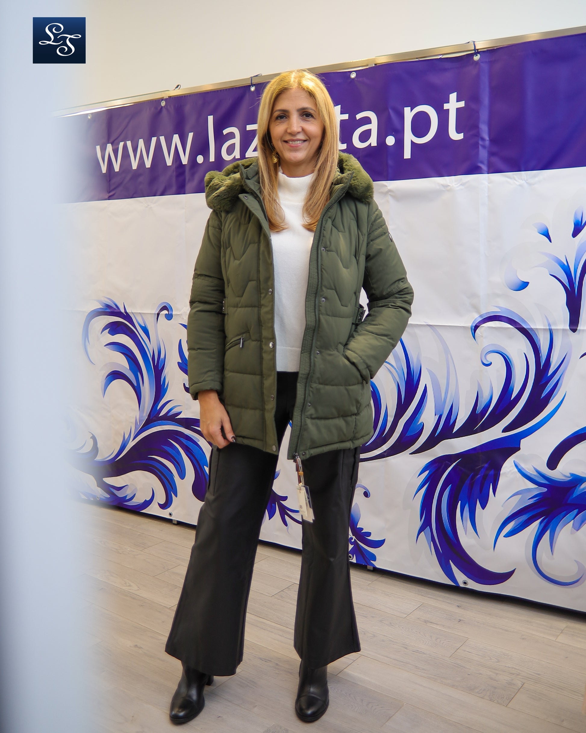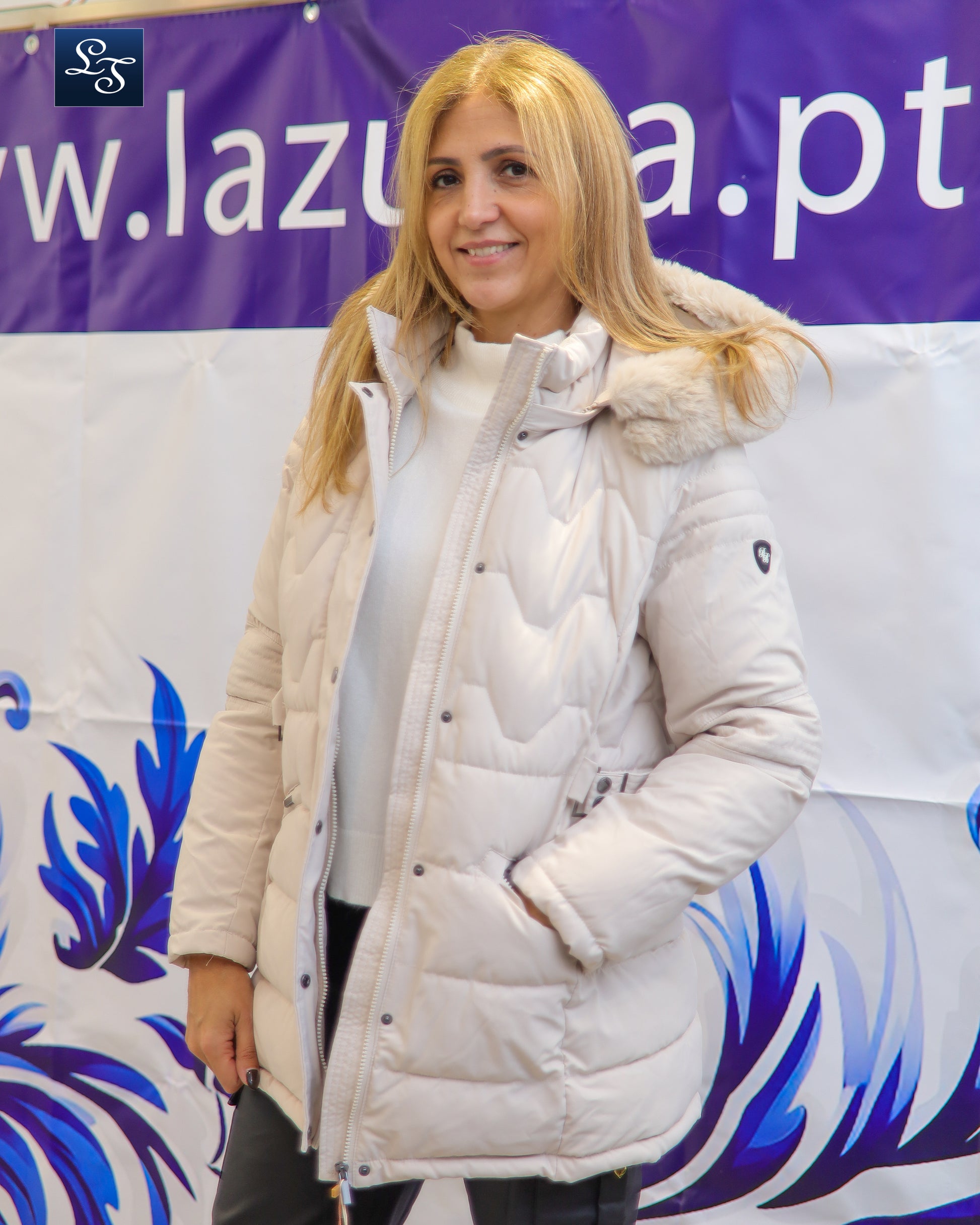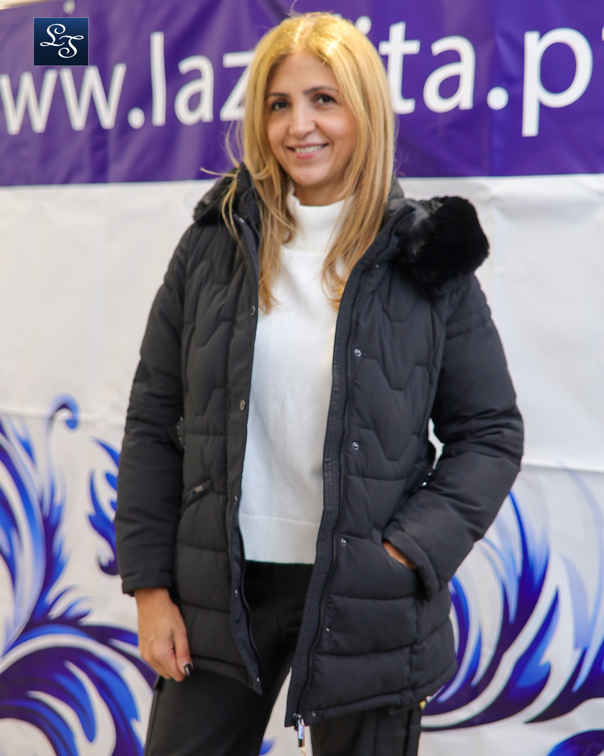 Casaco kispo com carapuço e pelo removíveis.